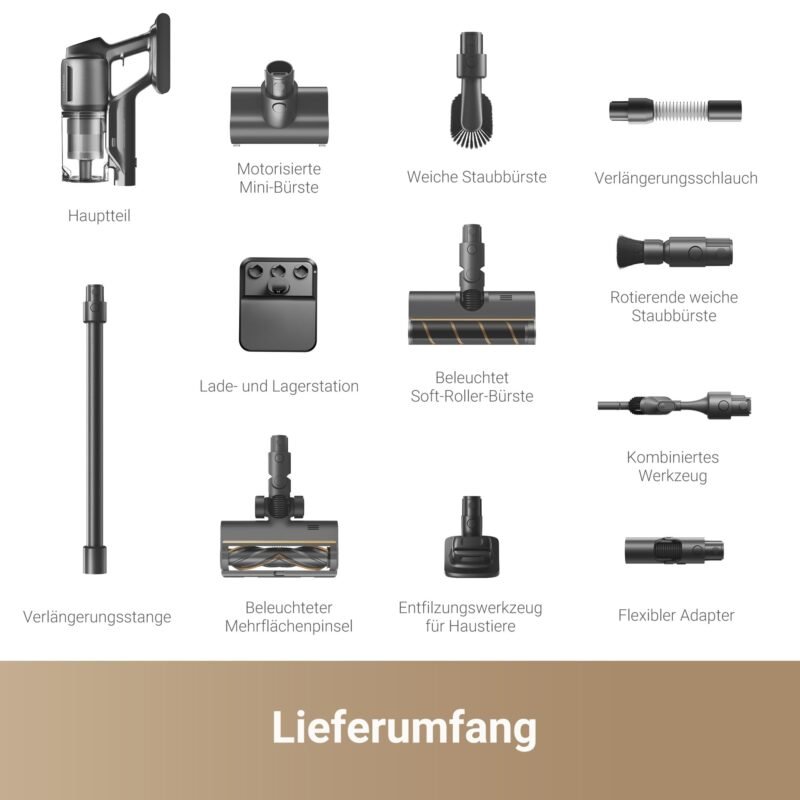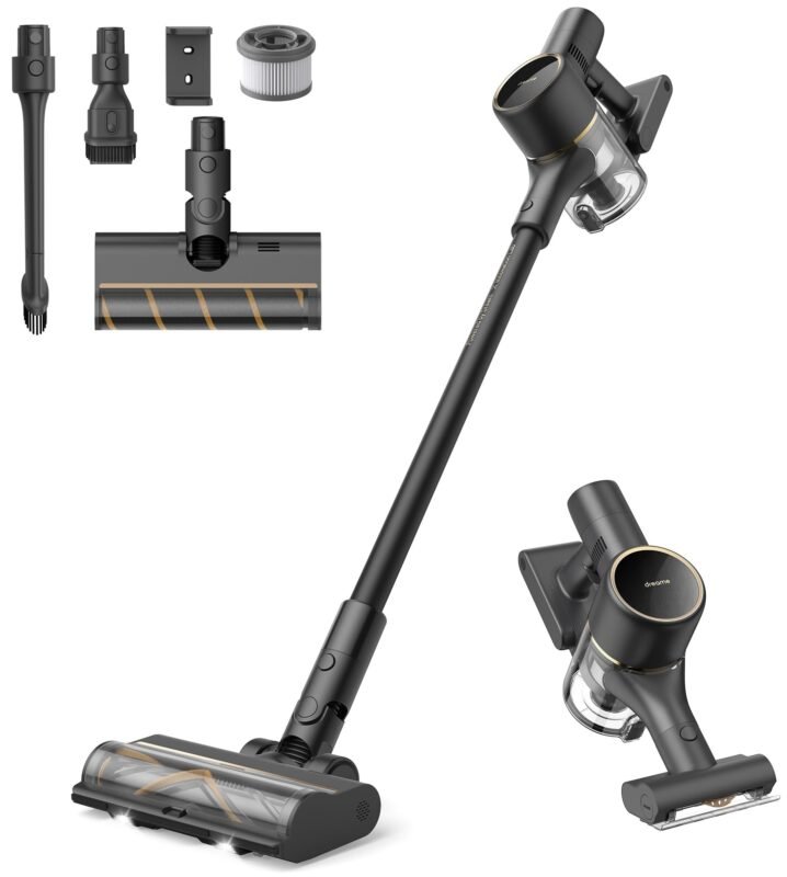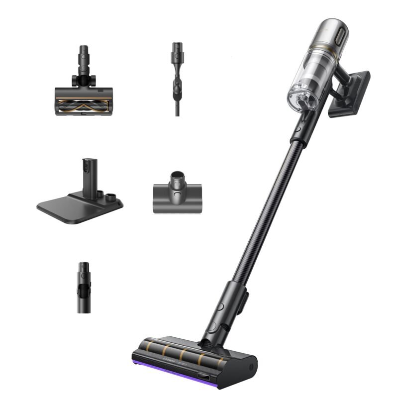 dreame V20 Pro-A Kabelloser Staubsauger 210AW / 24.000Pa, 0 mm Kantenreinigung, Anti-Verhedderung, 90 Min Laufzeit, 99,99% Filter, für Hartboden & Teppich, Schwarz