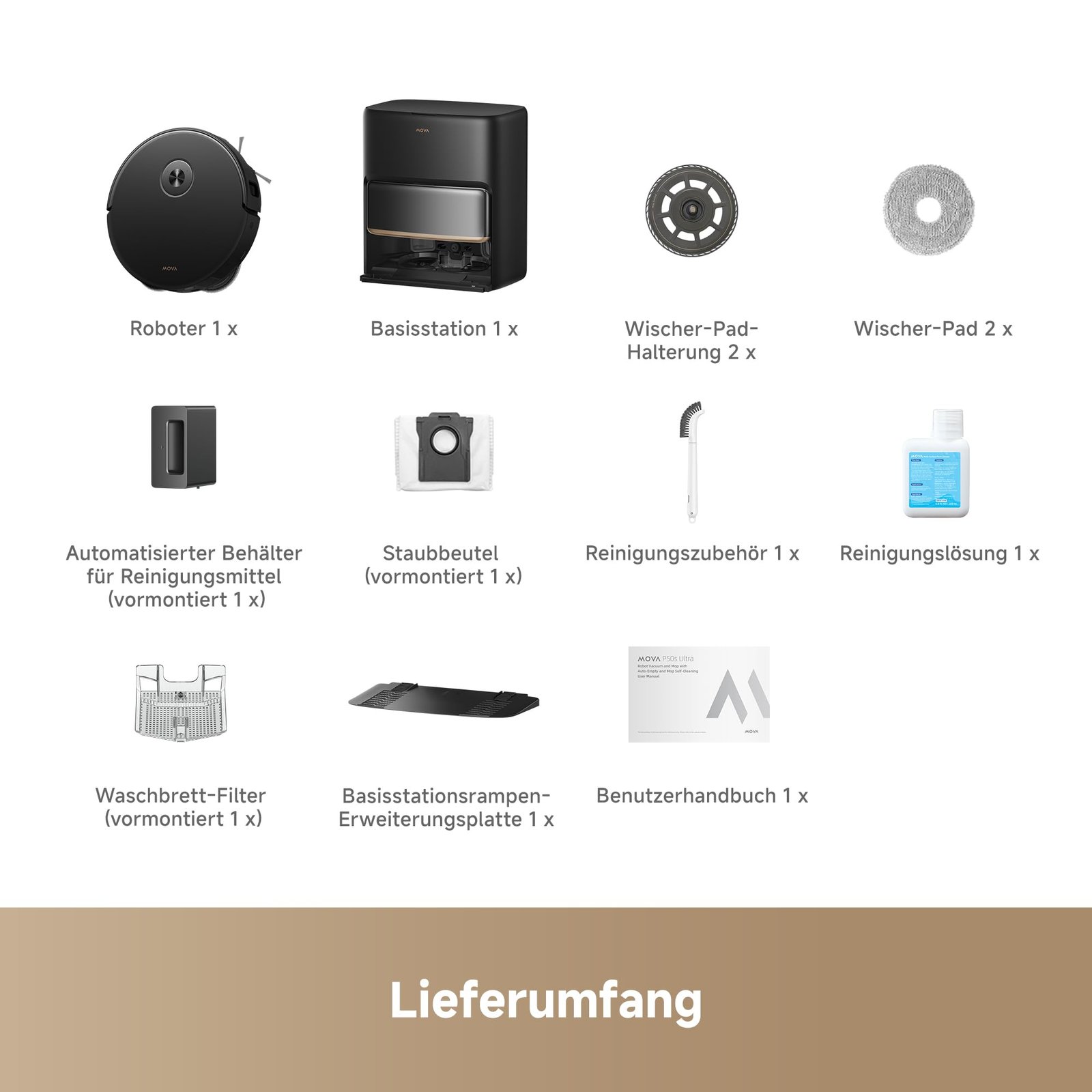 Mova P50s Ultra Saug- und Wischroboter, 24.000 Pa, StepMaster 6 cm Hindernisüberwindung, Dual-Light 3D ToF FlashPulse, Auto-Leerung, FlexMop RoboSwing, Schwarz
