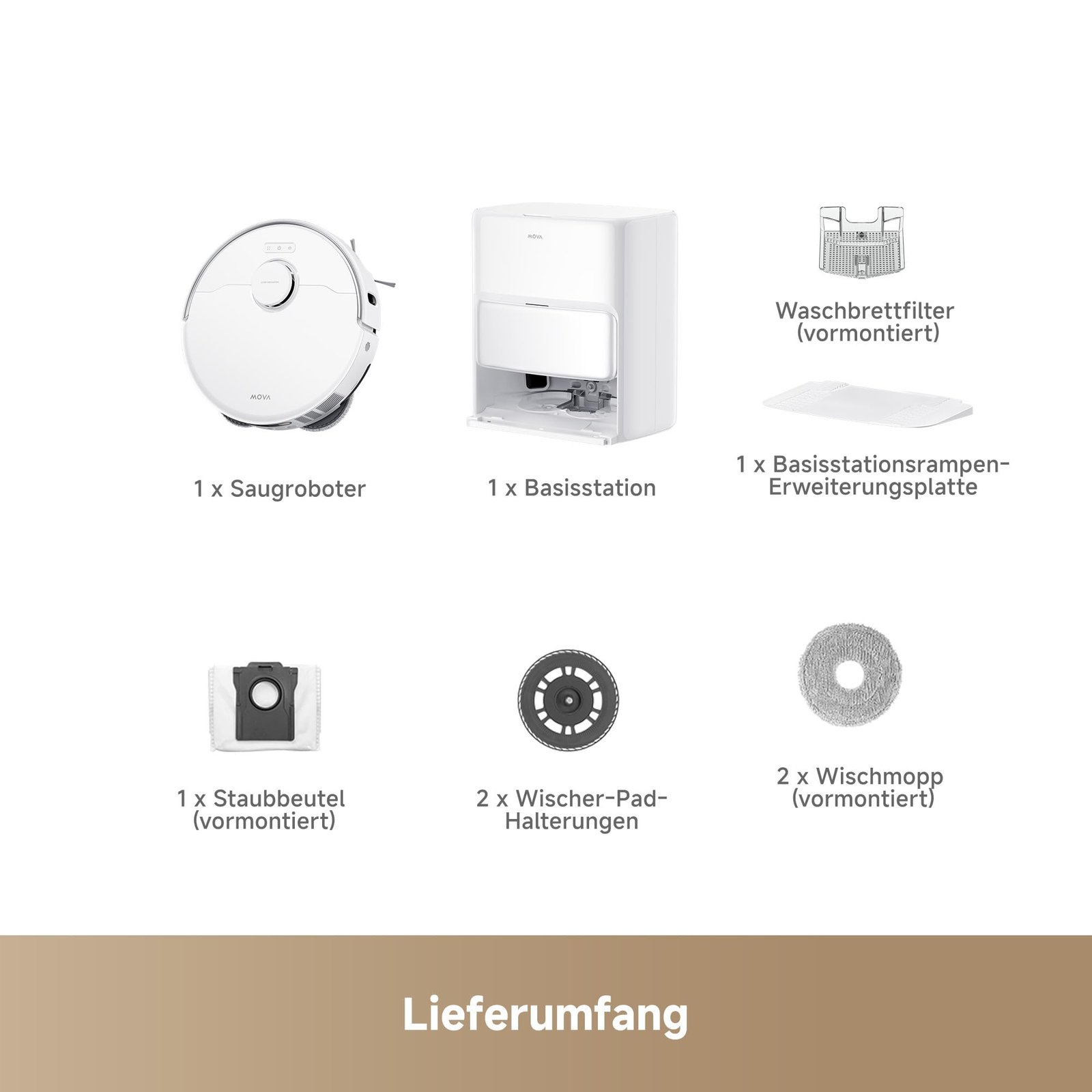 Mova P50 Ultra Saugroboter mit Wischfunktion, 19.000 Pa, 75 ℃ Moppwäsche, automatische Leerung & Nachfüllung, flexible Kantenreinigung, CleanLift-System, Weiß