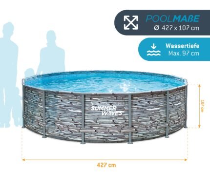 Marke: Summer Waves Farbe: Grau Eigenschaften: ABMESSUNGEN: Dieser Pool von Summer Waves ist rund und besitzt einen Durchmesser von 427