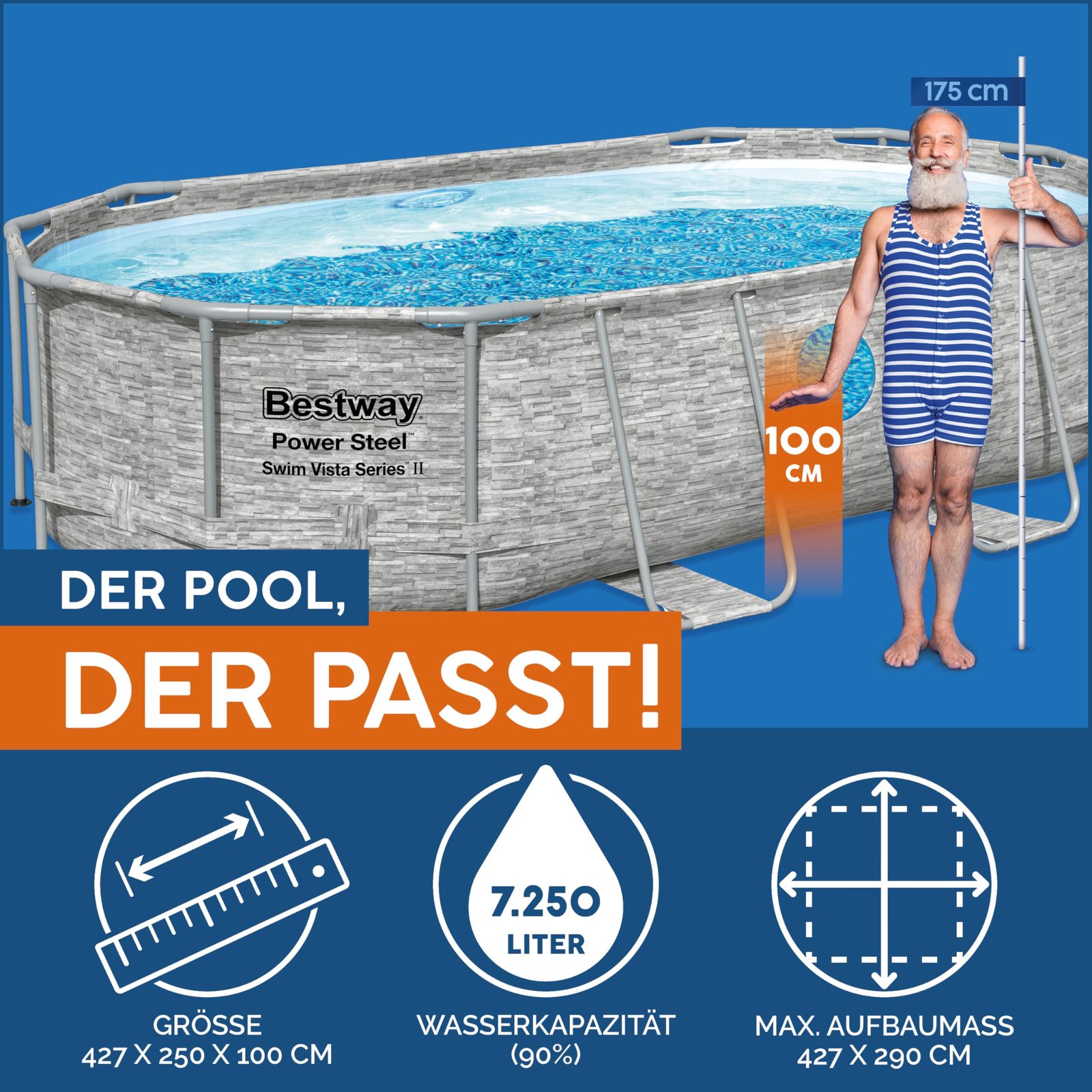 Bestway® Ersatzpool (ohne Zubehör) Power Steel Swim Vista Series Frame Pool/Aufstellbecken, 427 x 250 x 100 cm, oval, braune Rattan-Optik
