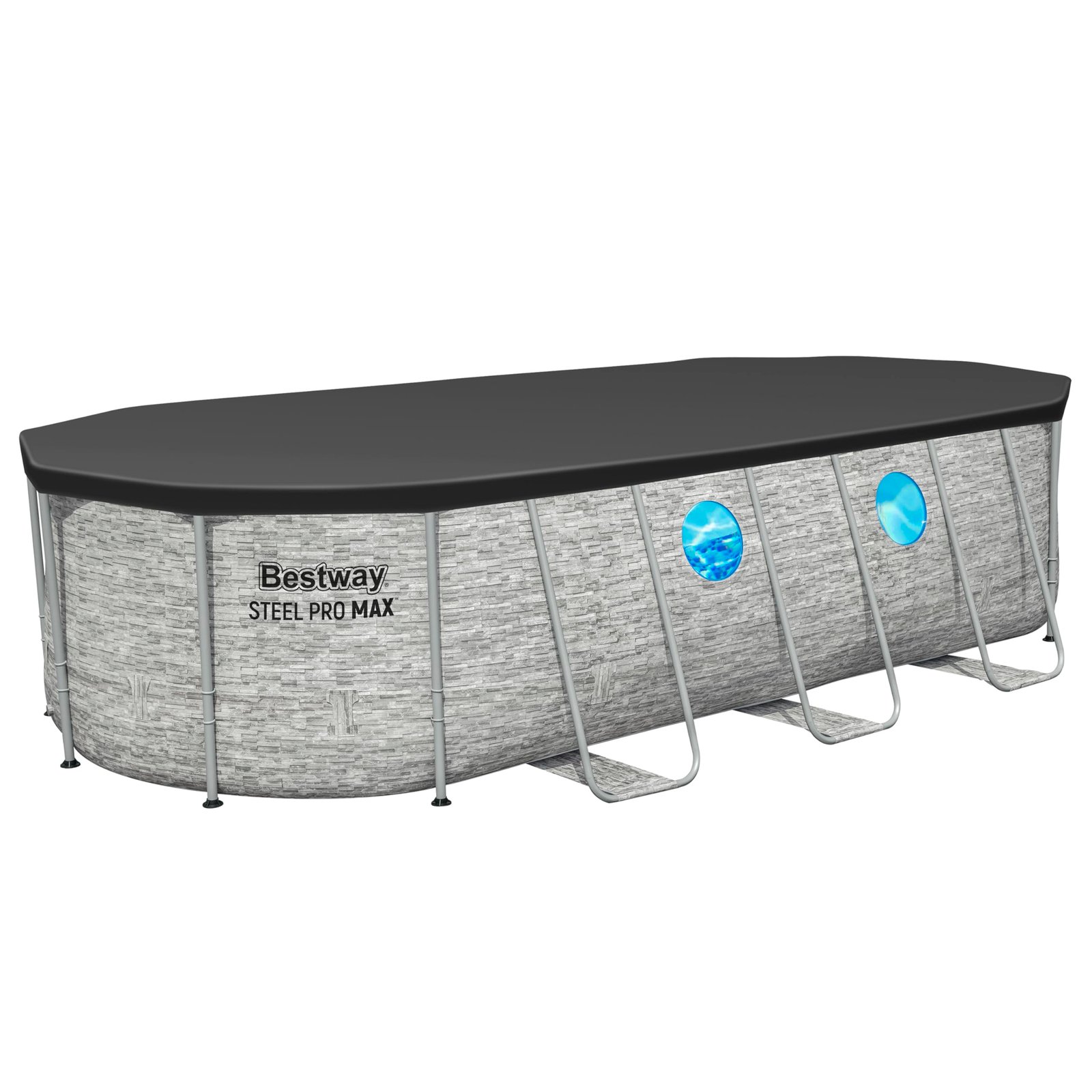 Bestway Power Steel Swim Vista Series Frame Pool Komplett-Set mit Filterpumpe 549 x 274 x 122 cm, Steinwand-Optik (Cremegrau), oval