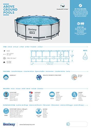 Schreibe die erste Rezension für „Bestway Steel Pro MAX Frame Pool Komplett-Set mit Filterpumpe Ø 427 x 122 cm, lichtgrau, rund“
