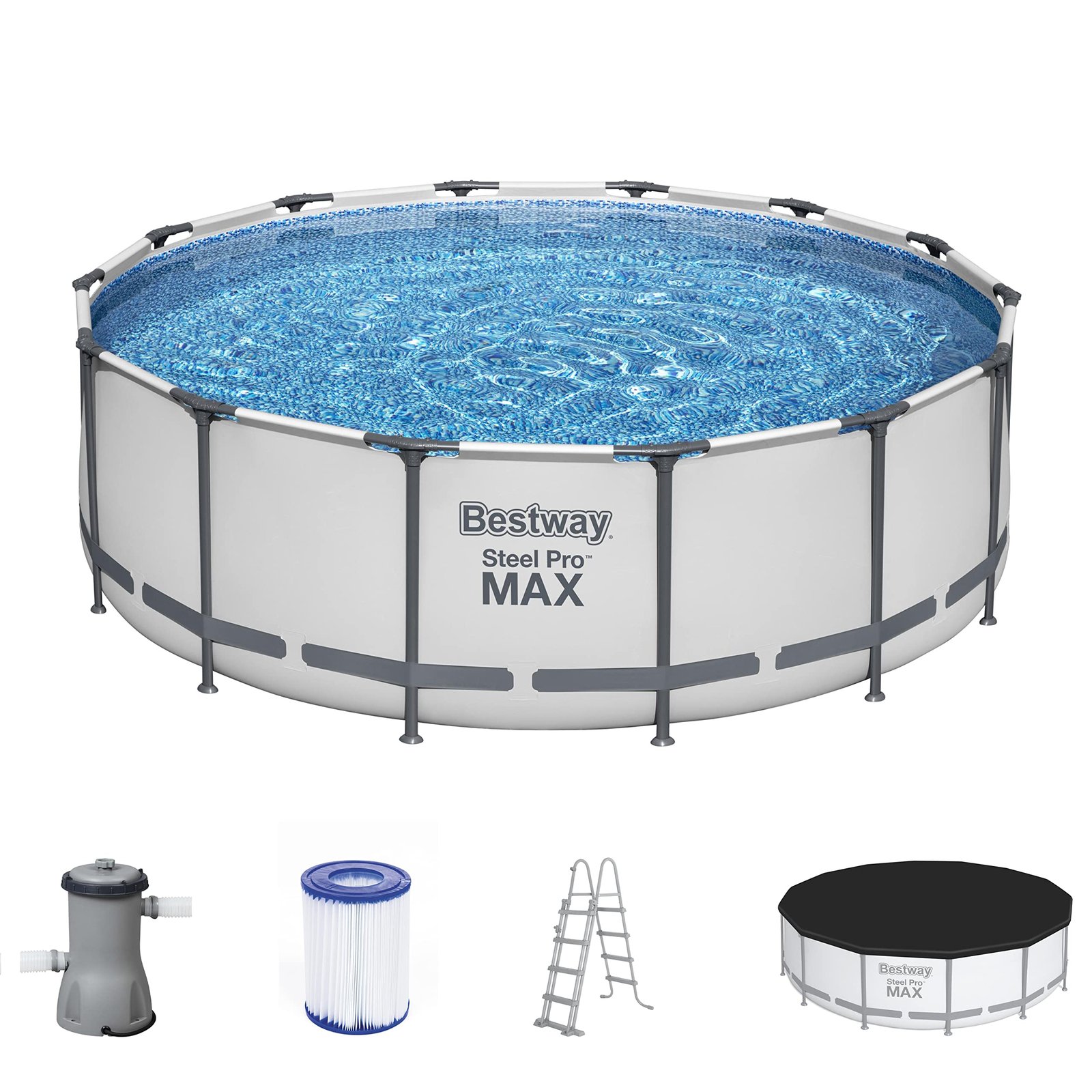 Bestway Steel Pro MAX Frame Pool Komplett-Set mit Filterpumpe Ø 427 x 122 cm, lichtgrau, rund