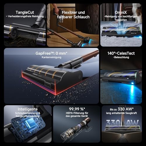 dreame V30 Kabelloser Staubsauger 330AW / 30.000Pa, 0 mm Kantenreinigung, 90 Min Laufzeit, Anti-Verhedderung, 99,99% Filter, für Teppich & Hartboden, Schwarz