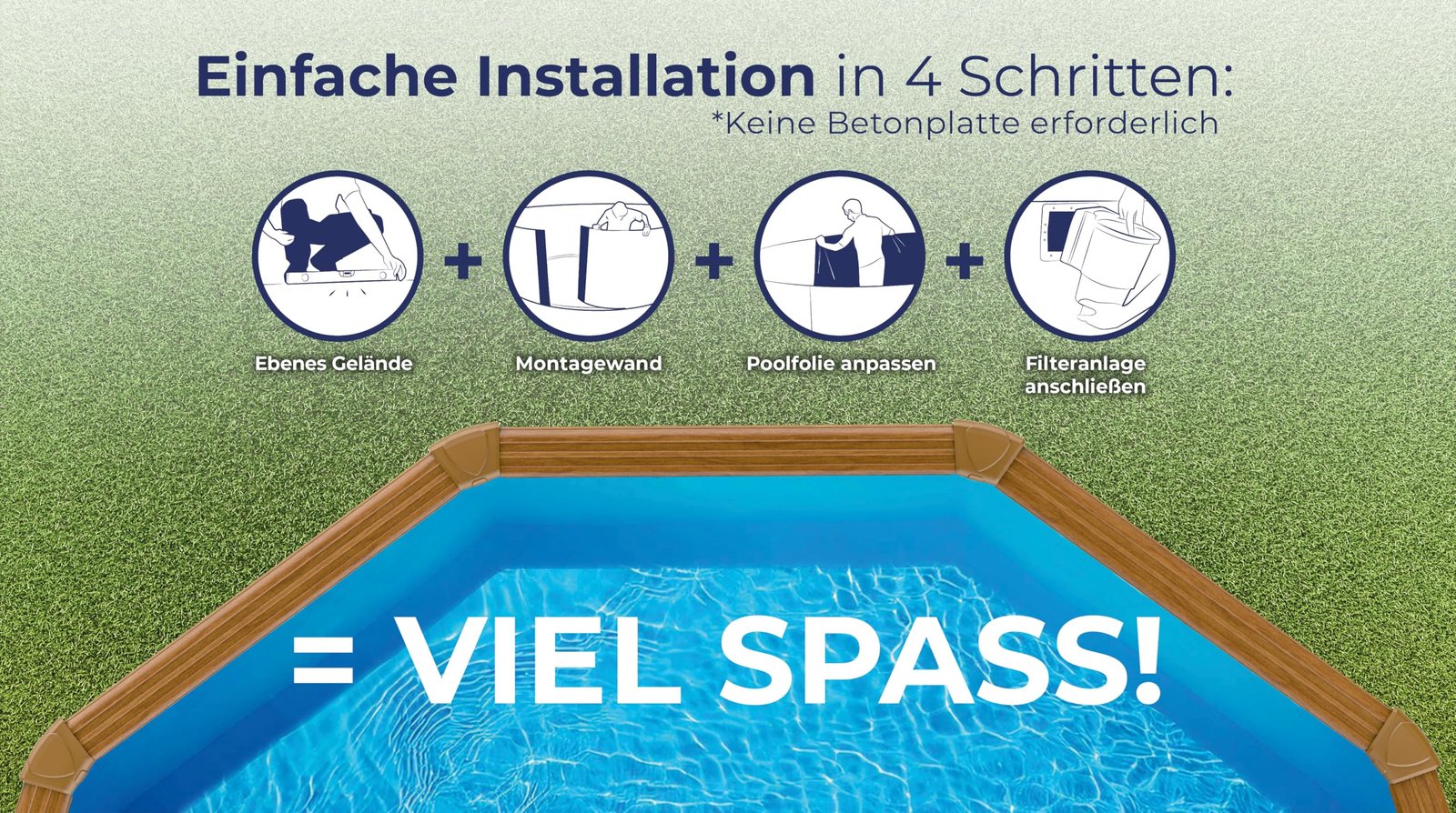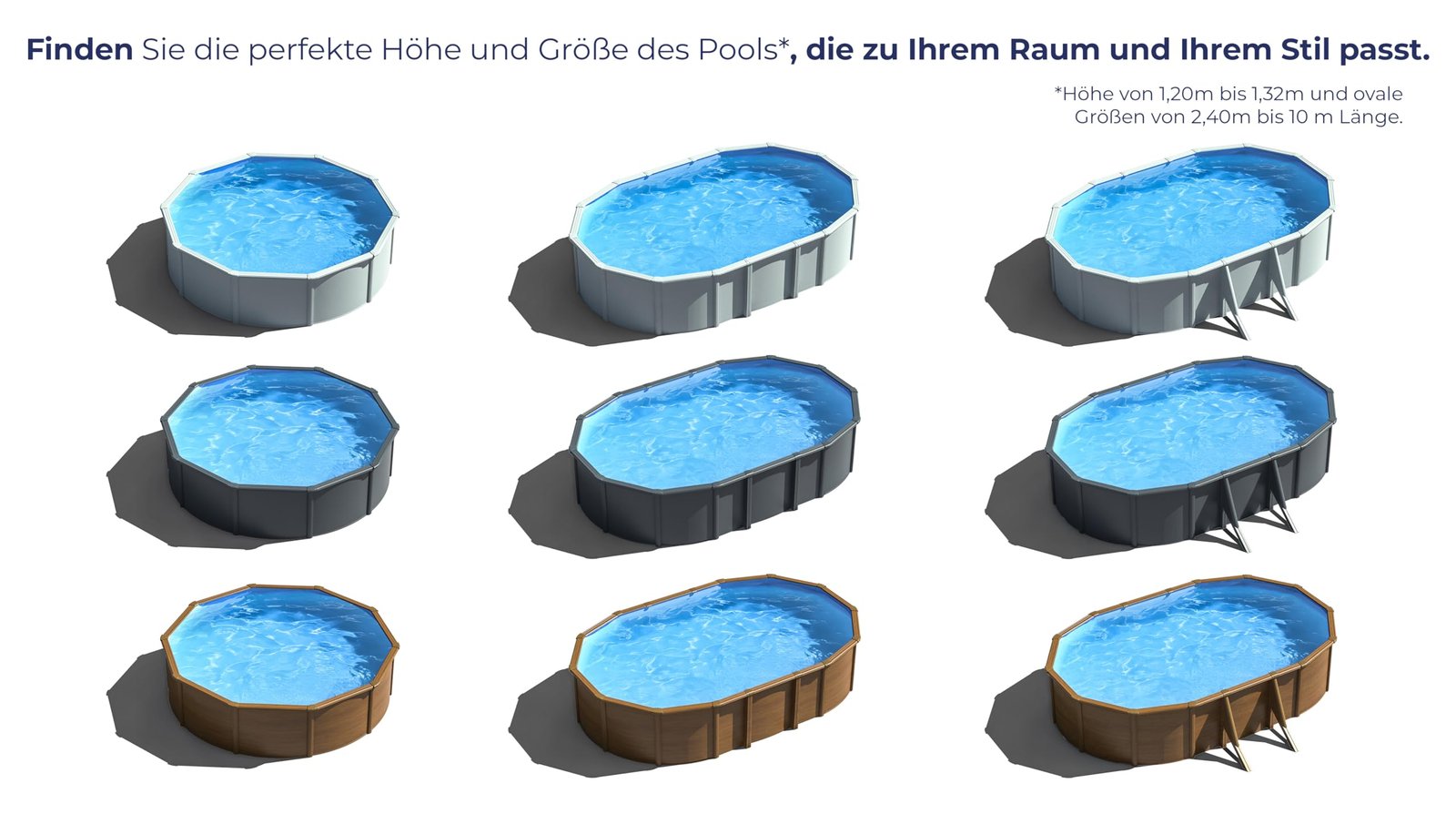 • Aufstellpools sind die perfekte Wahl für Ihren Garten, da sie mit geringem Aufwand zu installieren sind und in Zeiten geringer Nutzung jederzeit abgebaut und gelagert werden können. Unser Sicilia-Pool bietet Sicherheit und Leichtigkeit, um die schönsten Momente mit Familie und Freunden zu erleben.