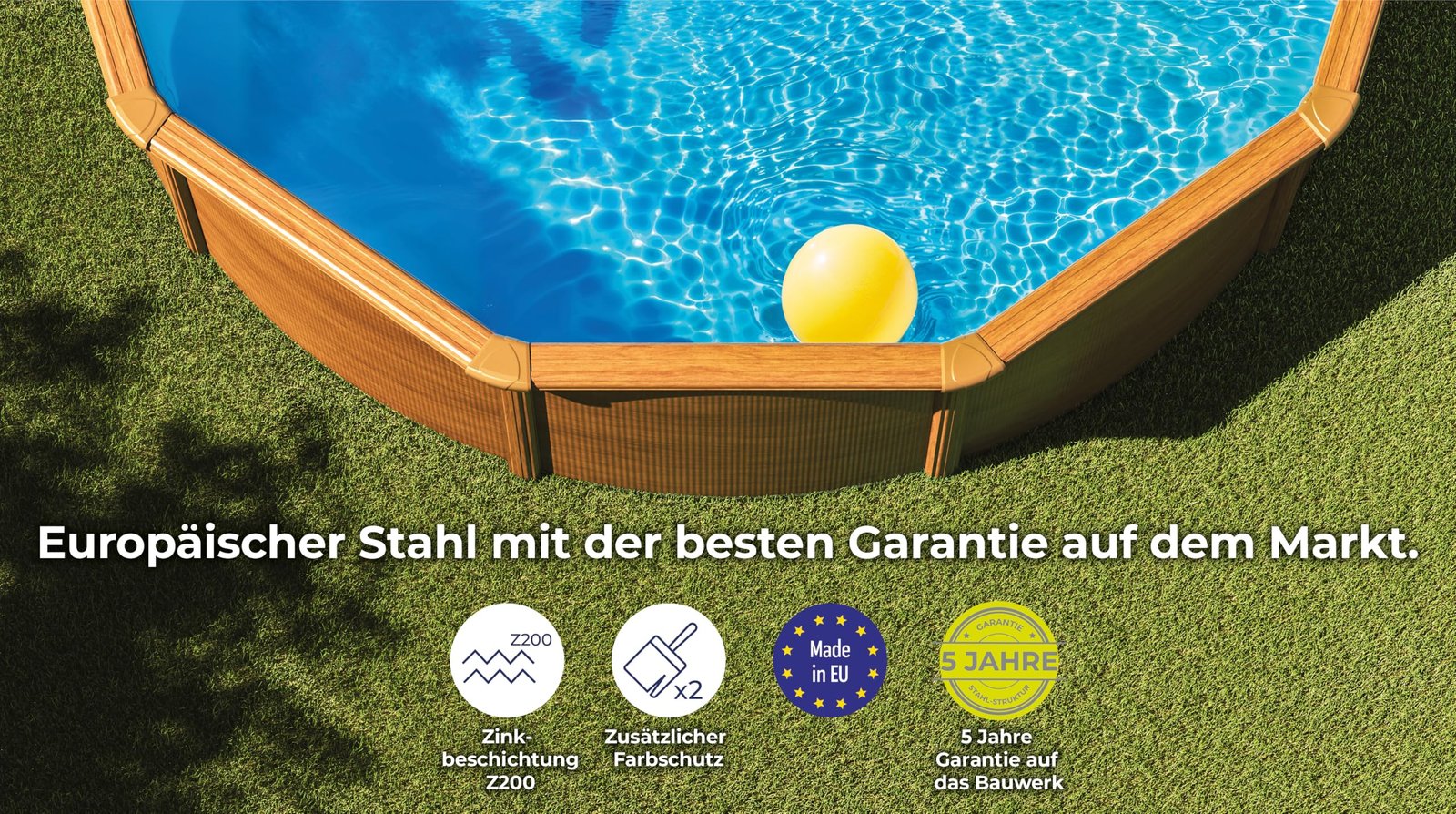 • Abnehmbarer Gre Pool, mit einer Stahlwand in Holzoptik, einem Durchmesser von 350 cm und einer Höhe von 120 cm. Ideal für Gärten und Terrassen. Dieser aufgestellte Pool ist perfekt für die heißesten Sommertage. Bauen Sie Ihren Pool für die Monate ohne Nutzung leicht und sicher auf und ab.
