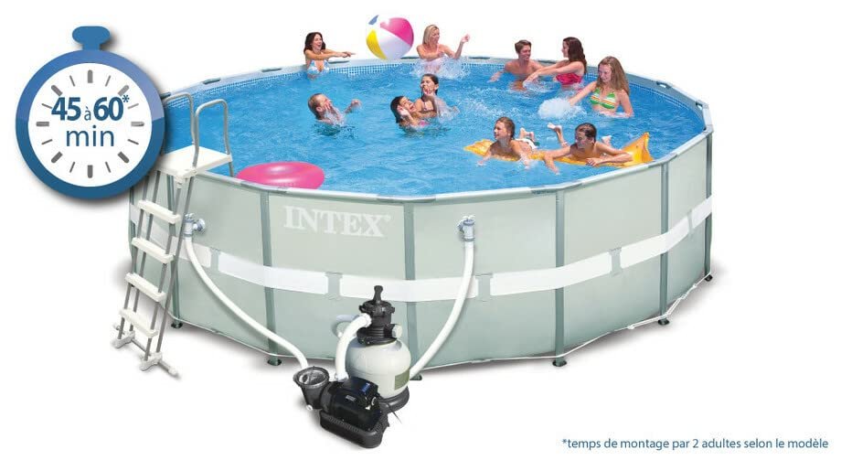 Mit der klassischen runden Form, einem eleganten dunkelgrauen Außenfutter und dem wasserblauen Flieseninnendruck, ist Ihr Pool der INTEX Ultra XTR Premium Pool Serie ein absoluter Hingucker.